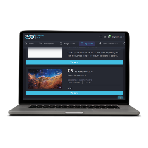 La Academia 360° es un espacio de formación continua diseñado para ayudarte a crecer en las áreas clave del emprendimiento.